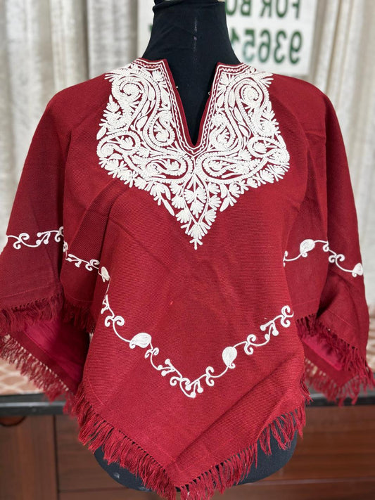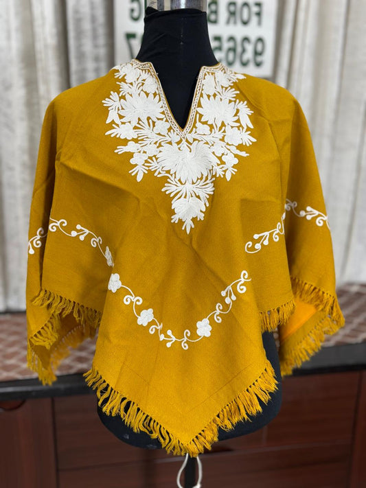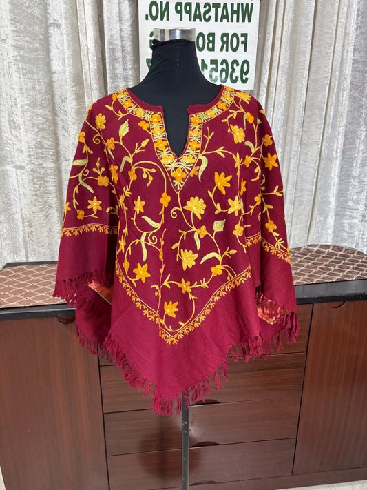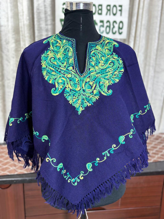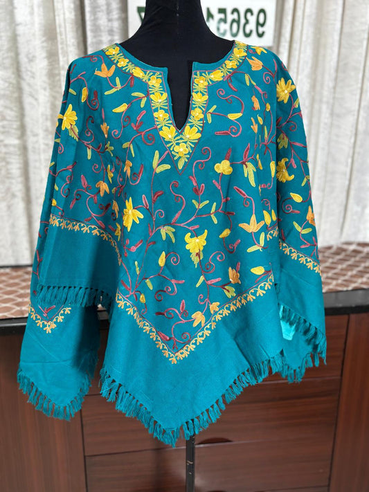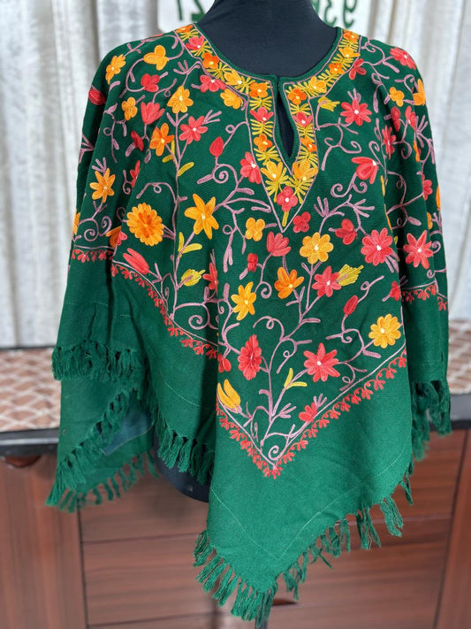 Kashmiri Aari Embroidered Woollen Poncho – | Handcrafted Heritage