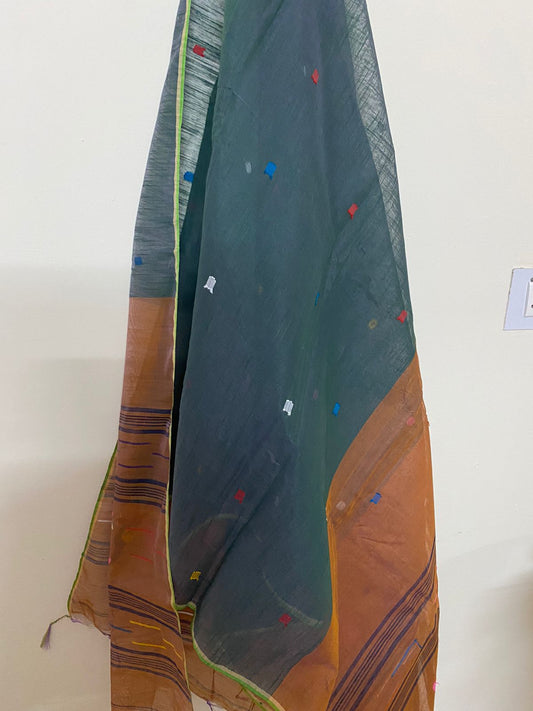 Dark green Handloom Jamdani Chanderi Cotton by Silk Two Piece Unstitched Suit Set