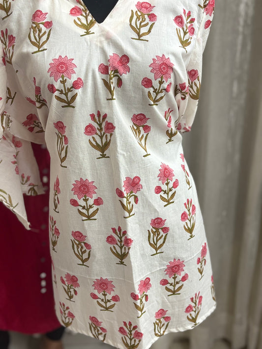 Pure cotton hand blocked summer short Kurtis