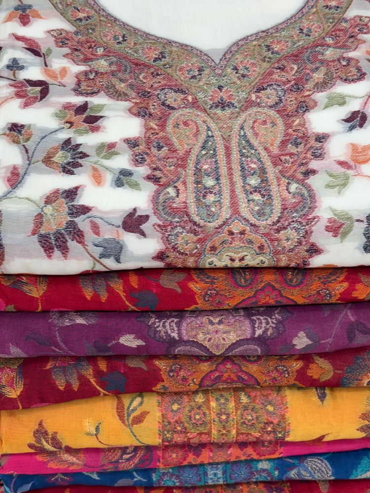 Ivory white Kashmiri Kani Silk Suit Set 02