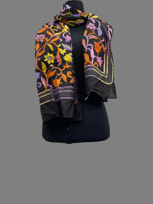 Multicolor - Bengal Kantha Embroidery Handloom Tussar Silk Stole