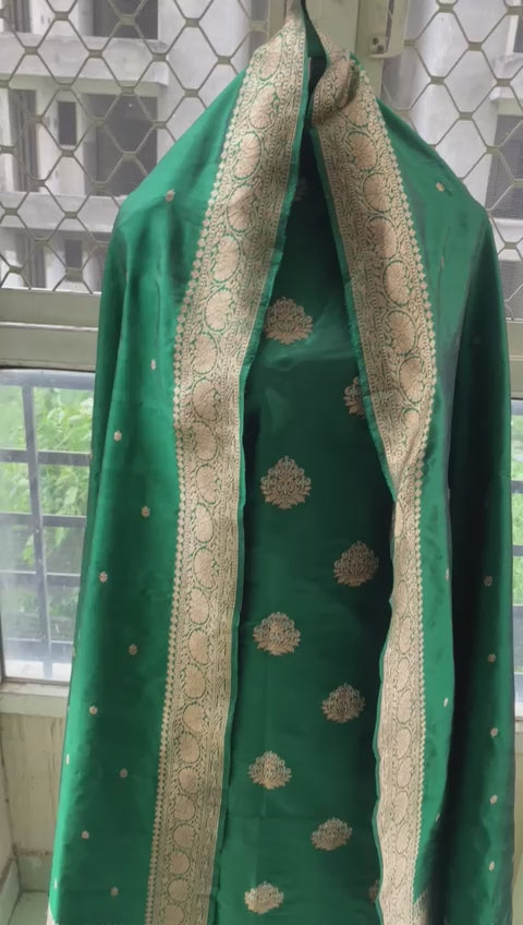 Green Handwoven Benarsi Pure Raw silk Suit set