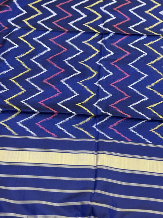 Blue handloom pure mulberry silk Patola dupatta with geometrical pattern