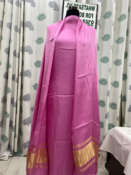 Peach - Ajrakh Block Printed Modal Silk Stole with Tassels 1