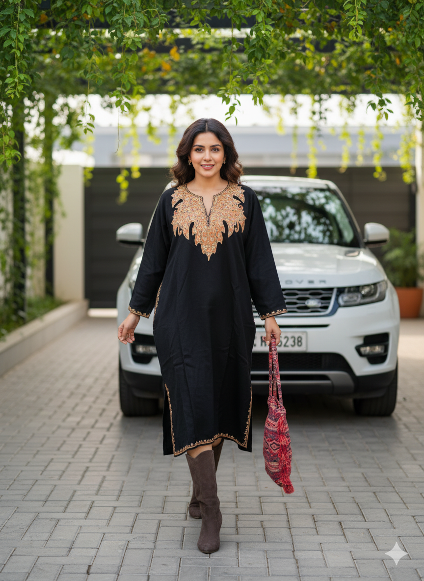 Black - Aari Embroidery Kashmiri acrylic Wool Pheran