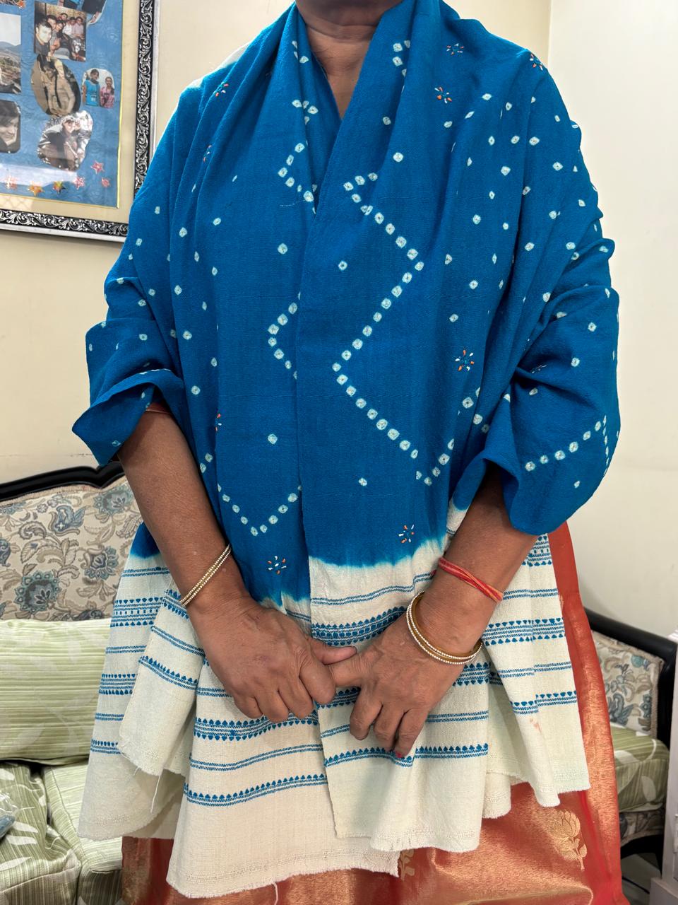 MERINO KUTCH HAND BANDHINI WOOLLEN SHAWL DUAL TONE