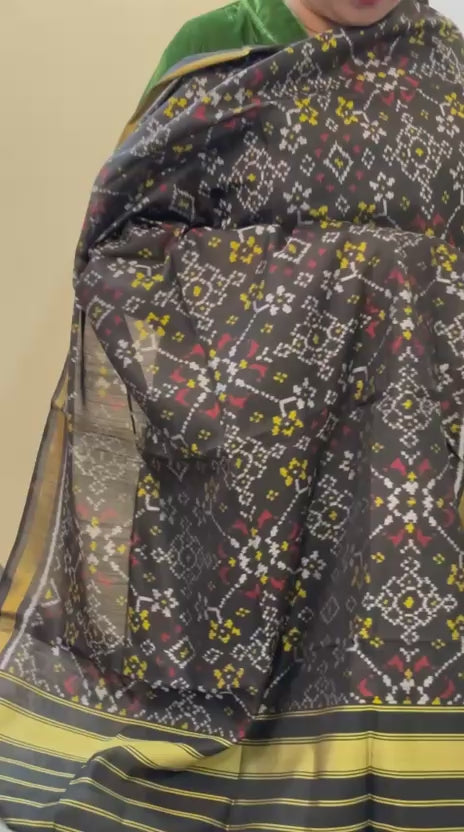 Black handloom pure mulberry silk  Patola dupatta with hathi motif