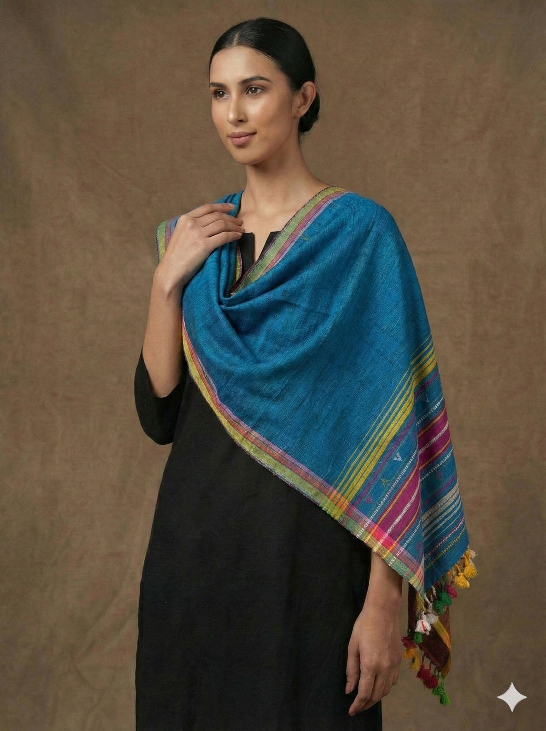Handwoven woollen pure tussar and wool kutch weaving stole