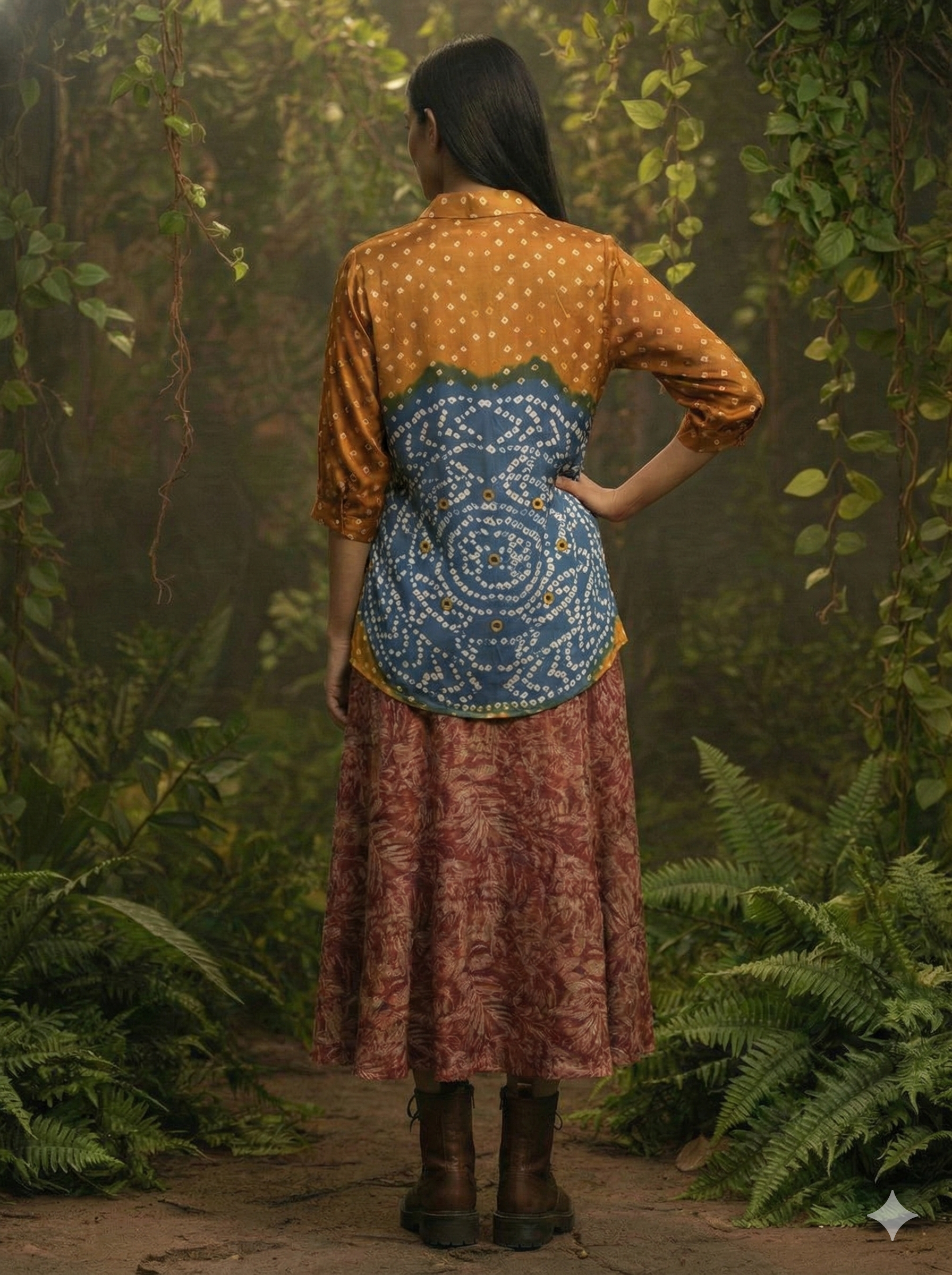 Modal Shirt can be styled in multiple ways. Throw it with a skirt / Lehenga to a wedding or wear it to a night event with formal trousers or as an outerwear.