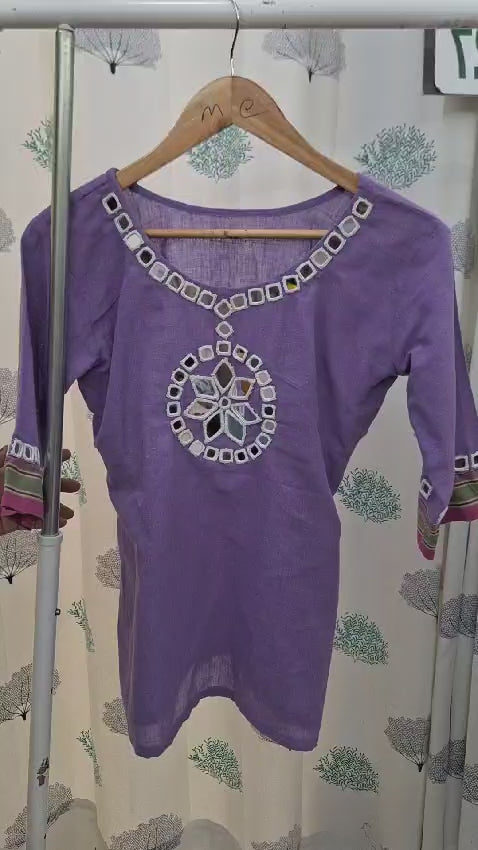 Elevate your wardrobe with this exquisite hand embroidered with real mirrors  kurta, handcrafted using the age old technique from Kutch . Made with natural dyes on cotton this kurta embodying cultural richness. Its lightweight fabric ensures all-day comfort. Perfect for any occasion its a true blend of heritage and modernity.