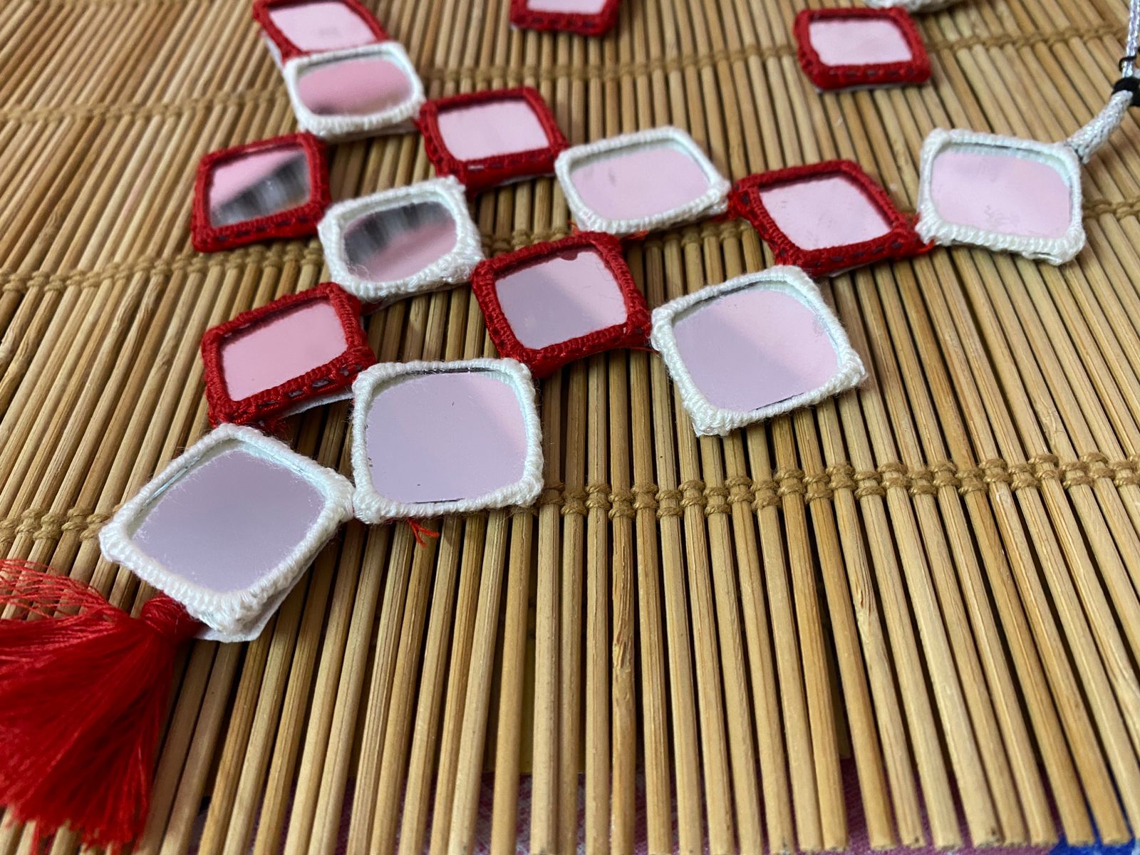 Mirror embroidery is a very intricate form of embroidery, great detailing is needed to sew the mirrors on the fabric.
