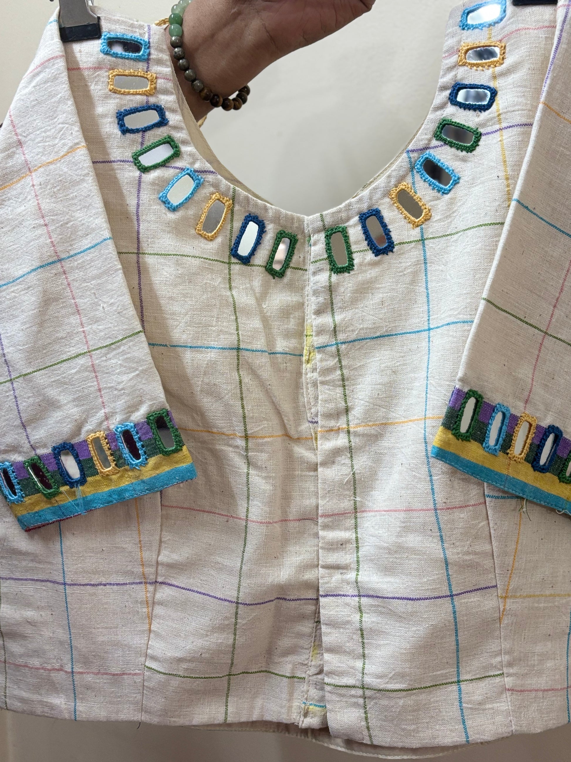 Off white KUTCH MIRROR WORK KALA COTTON BLOUSE